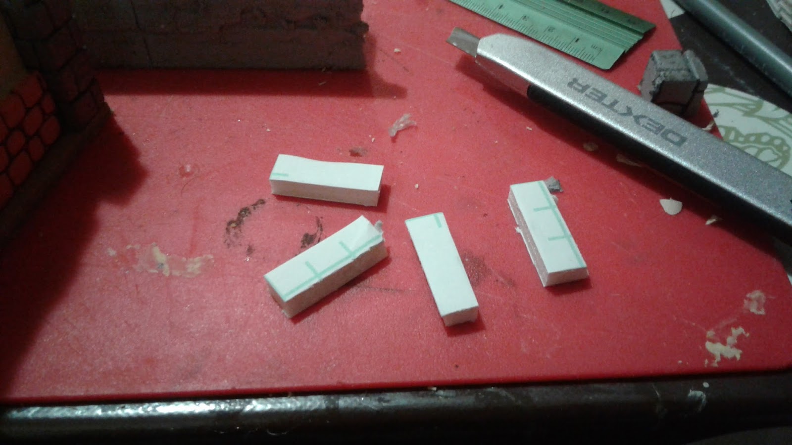 Para sujetar los suelos usaremos pedazos de carton pluma, para formar unos apoyos en las paredes.
